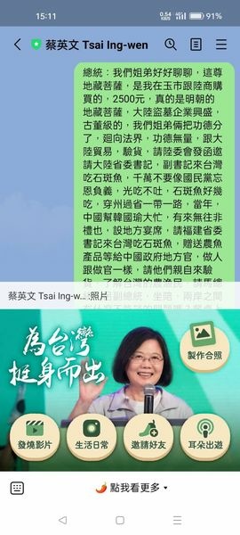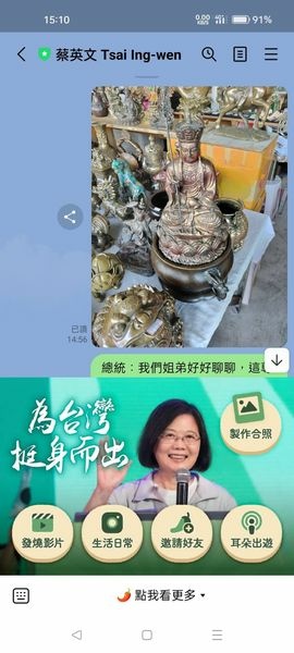 總統:我們姐弟好好聊聊,這尊地藏菩薩,是我在玉市跟陸商購買的,2500元,真的是明朝的地藏菩薩,大陸盜墓企業興盛,古董級的,我們姐弟倆把功德分了,廻向法界,功德無量,跟大陸貿易,驗貨,請陸委會發函邀請大陸省委書記,副書記來台灣吃石斑魚,千萬不要像國民黨忘恩負義,光吃不吐,石斑魚好幾吃,穿州過省一帶一路,當年,中國幫韓國瑜大忙,有來無往非禮也,設地方宴席,請福建省委書記來台灣吃石斑魚,贈送農魚產品等給中國政府地方官,做人跟做官一樣,請他們親自來驗貨,了解台灣的農漁民,請馬總統,呂副總統,坐陪,兩岸之間有什麼不能談的問題嗎?餐桌上談?!有來無往非禮也!