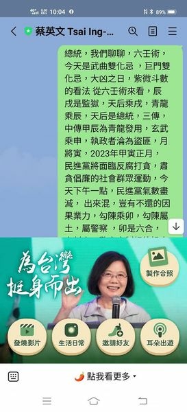 總統:向妳請安,我們來玩中國古代帝臣共射,射覆的六壬術,今天巳時,軍隊車禍,原因為何,根據六壬術,壬子,葵丑必因兄弟而財動,今天是財神發財日,卻出意外,官兵大都是骨折,主因為,葵丑日,丁巳時,丁巳是螣蛇,丑是墓,螣蛇入墓,必因兄弟行於道路上而發生交通意外,巳是驛馬,積善之家必有餘慶,積不善之家必有餘殃,妳今天進財,軍隊就出車禍,君臣互為表裏關係,三元九運離火衝天,妳年紀大了,自己的骨頭,牙齒,淋巴結,要小心,錢,生不帶來,死不帶去,有德之人,使用六壬術,隨心應手,德失福盡,天降災殃,我昨天就知道今天早上巳時軍隊會車禍,明天是甲寅日,對應2023正月,甲寅是六十甲子最後一旬,吳敦義就是甲寅日,國民党的末代副總統,火運將至,民進黨綠色執政,木性火炎,燒的精光,不過,妳不用擔心,國民党的衰運正要開始,蔣萬安,姓名滿盤皆木,李四川,滿盤木火,也是燒的精光,韓國瑜在當高雄市長時,工程補路費,耗費巨大,蔣萬安不會反腐打貪,肅貪倡廉,一點都不像經國先生,只知道搞工程,火燒庇案,壬子月,甲寅日,己巳時,弊案成庇,國民党的衰運開始了,串燒一蘿筐,大哥不要笑二哥!